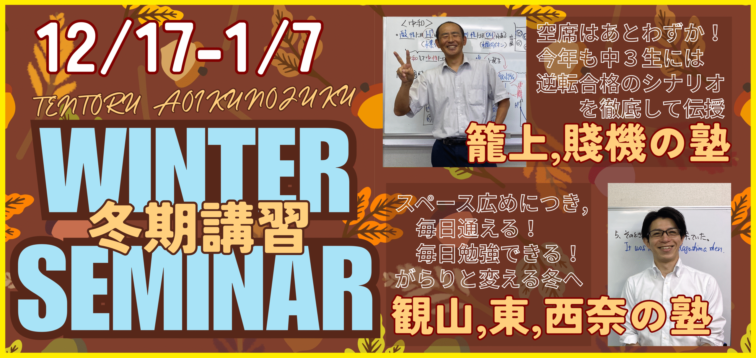 □「籠上,賤機の塾」中3,中1,小6生募集中