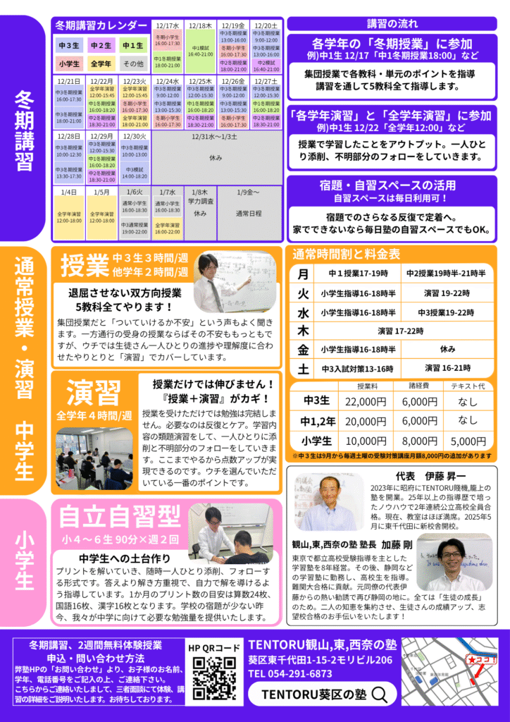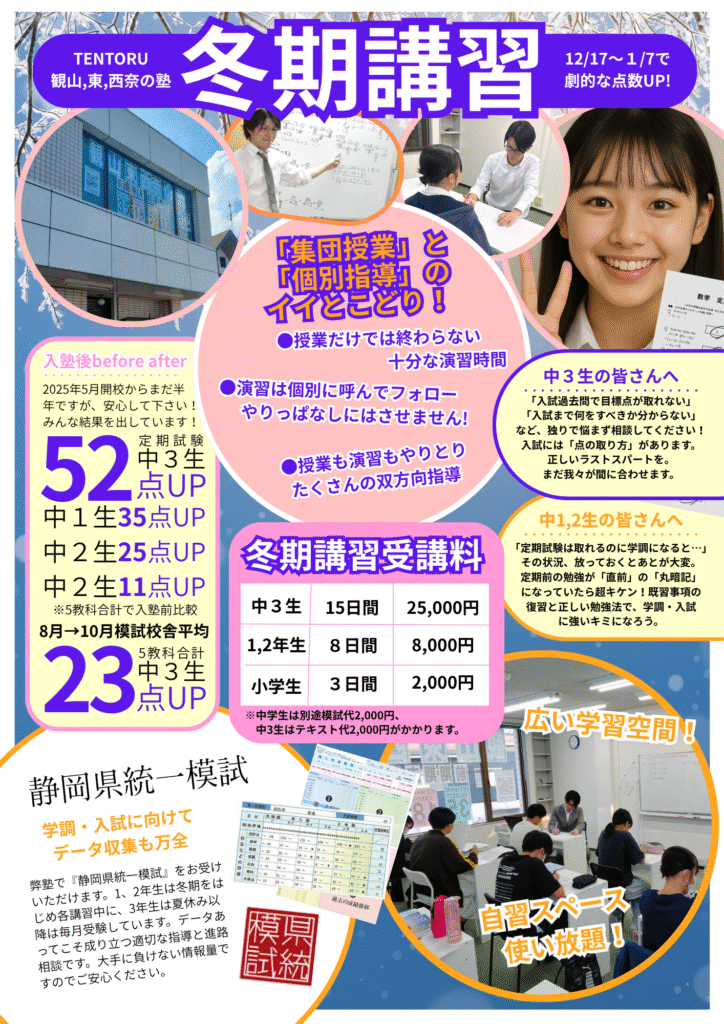 TENTORU式 全力冬期講習 受付開始!